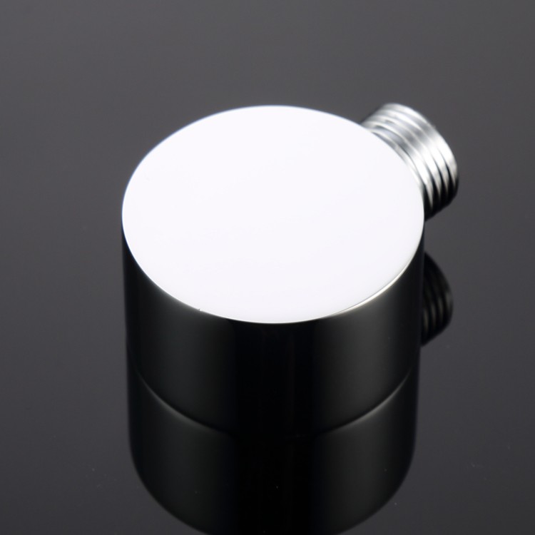 Brass Plumbing Elbows is a type of fitting commonly used in bathroom and kitchen piping systems. Its main function is to connect hoses to wall outlets. It has a simple cylindrical appearance with a flat and smooth front, a diameter of approximately 50mm, a thickness of 40mm, and a high-gloss chrome-plated surface. It has a standard threaded interface on the side, which can be firmly connected to the shower hose or other water channel parts to ensure stable water flow.