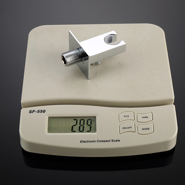 Solid Construction - The scale image shows a measured weight of approximately 289 grams, indicating a dense metal structure consistent with solid brass or high-density alloy materials typically used in sanitary fittings. At this weight level, the holder can reliably support handheld shower heads that commonly weigh between 0.7 kg and 1.3 kg, including the additional dynamic load created by a water-filled hose. The substantial mass reduces vibration and micro-movement during docking, improving long-term stability and minimizing loosening under repeated daily use cycles that can exceed several thousand placements per year.