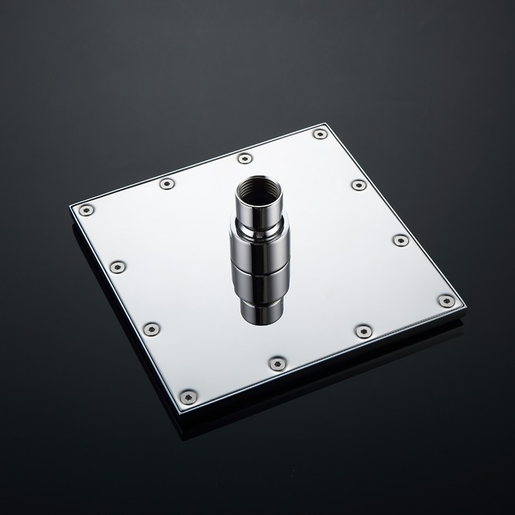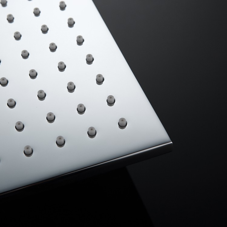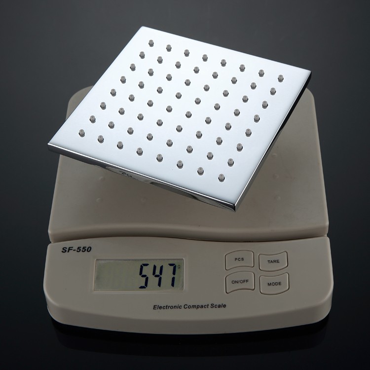 The Brass Waterfall Shower Head is a square overhead showerhead crafted from brass. Measuring 150mm x 150mm and approximately 8mm thick, it features clean, smooth lines and a polished, electroplated surface. Multiple silicone nozzles are evenly distributed across the water outlet. Weighing approximately 547g, it boasts a modern, minimalist design, making it ideal for bathroom ceiling installation, creating a waterfall-like effect.