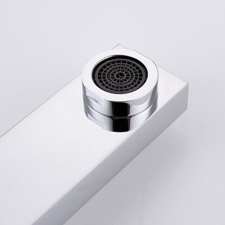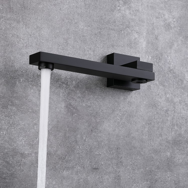 The Faucet Spout Diverter adopts a design that combines square and rectangular shapes. It is made of high-quality brass and has an electroplated surface (commonly available in bright chrome or matte black). The front of the spout has a lower water outlet and a water diverter button or switching device at the bottom, which can switch between bathtub water filling and shower water use. It is a hardware accessory installed on the wall of the bathtub or shower area. Its main function is to discharge water and switch between shower and bathtub water filling modes. It is both practical and beautiful.
