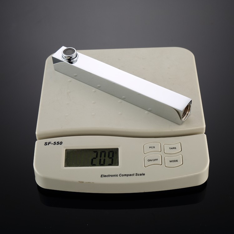 The Shower Faucet Spout adopts a modern and simple square design, combined with a high-gloss electroplating process, presenting a mirror-like gloss. The water outlet length is 200mm, the outlet size is approximately 25×30mm, and the weight is approximately 209g. It is not only a practical bathroom accessory, but also a decorative item that combines design aesthetics and functionality.