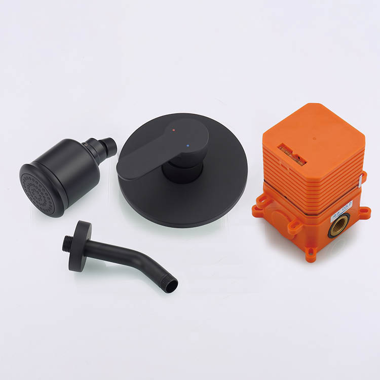 The Concealed Black Shower Set, with its matte black finish, creates a modern aesthetic of understated luxury. The cylindrical shower head, 71mm in diameter and 115mm in height, features evenly spaced spray holes for wide coverage. The control valve features a rounded base and streamlined lever handle, creating a smooth, seamless surface that blends seamlessly into various bathroom styles, such as minimalist or industrial. The electroplating layer is 10 microns thick, ensuring a uniform, long-lasting color and resisting scratching. This elegant design is the result of precision CNC machining with rounded edges to prevent scratches on the wall during installation. The matte black finish reduces glare and enhances the sense of depth, making it suitable for high-end residential or hotel applications. Overseas buyers will appreciate its alignment with international design trends, such as those in modern European bathroom styles, enhancing their brand image.