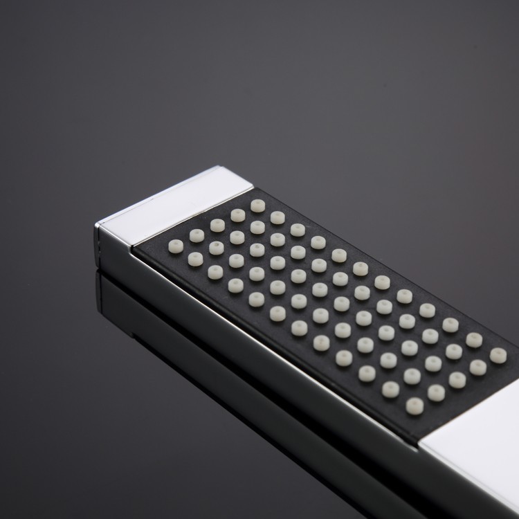 The Held Shower Head features a simple, rugged, straight-line design. Made primarily of ABS engineering plastic with a bright chrome plating, the head features evenly spaced black panels and gray silicone nozzles. Measuring approximately 222mm × 33mm × 10mm, it boasts a slender proportions, combining stylish decorative effects with practical functionality.