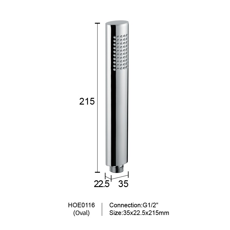 The Mist Hand Shower features an elegant oval design with a polished chrome finish. Its precise dimensions of just 35 x 22.5 x 215 mm and a G1/2-inch standard interface ensure a comfortable grip while delivering a smooth water flow and a gentle spray experience, making it ideal for relaxation and everyday use.