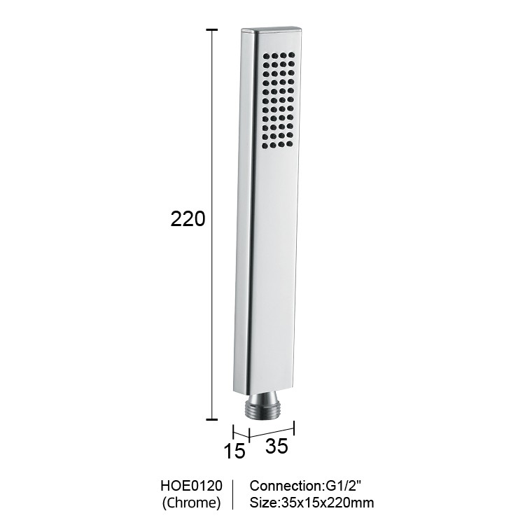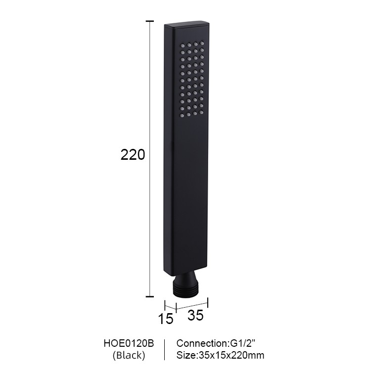 The Small Hand Shower adopts a simple square design and is made of a high-quality metal body. The surface is available in three exquisite finishes: bright silver chrome, matte black and brushed gold. It measures 35×15×220mm, and has multiple rows of silicone water holes evenly distributed on the water outlet surface. The bottom has a G1/2 standard interface that can be universally connected to most hoses. It is a compact handheld showerhead that is both practical and beautiful in the bathroom.
