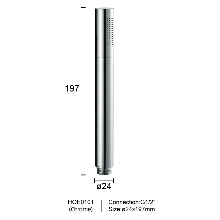 The Water Hand Shower is a minimalist wand-style handheld showerhead constructed of stainless steel with a chrome-plated finish. Available in two common sizes: 185 x Ø22mm and 197 x Ø24mm, the Water Hand Shower features a universal G1/2" thread, compatible with most commercially available hoses and showerhead brackets.