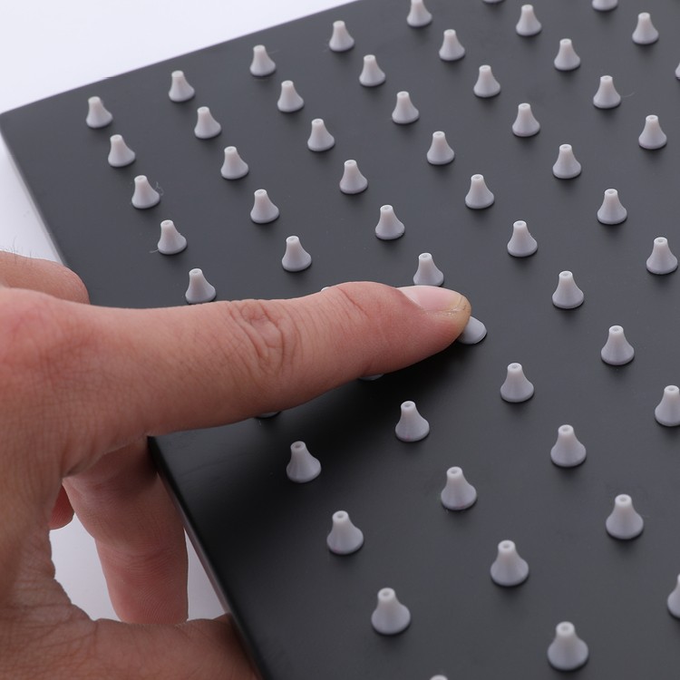 The Black Metal Shower Head features an ultra-thin square design, only 6mm thick, and a black metal coating. Available in various sizes, including 150mm, 200mm, 250mm, and 300mm, the Black Metal Shower Head features evenly distributed silicone nozzles on the water outlet. The overall design not only emphasizes aesthetics, but also balances durability and a comfortable showering experience, making it suitable for bathroom environments that pursue a modern and practical feel.
